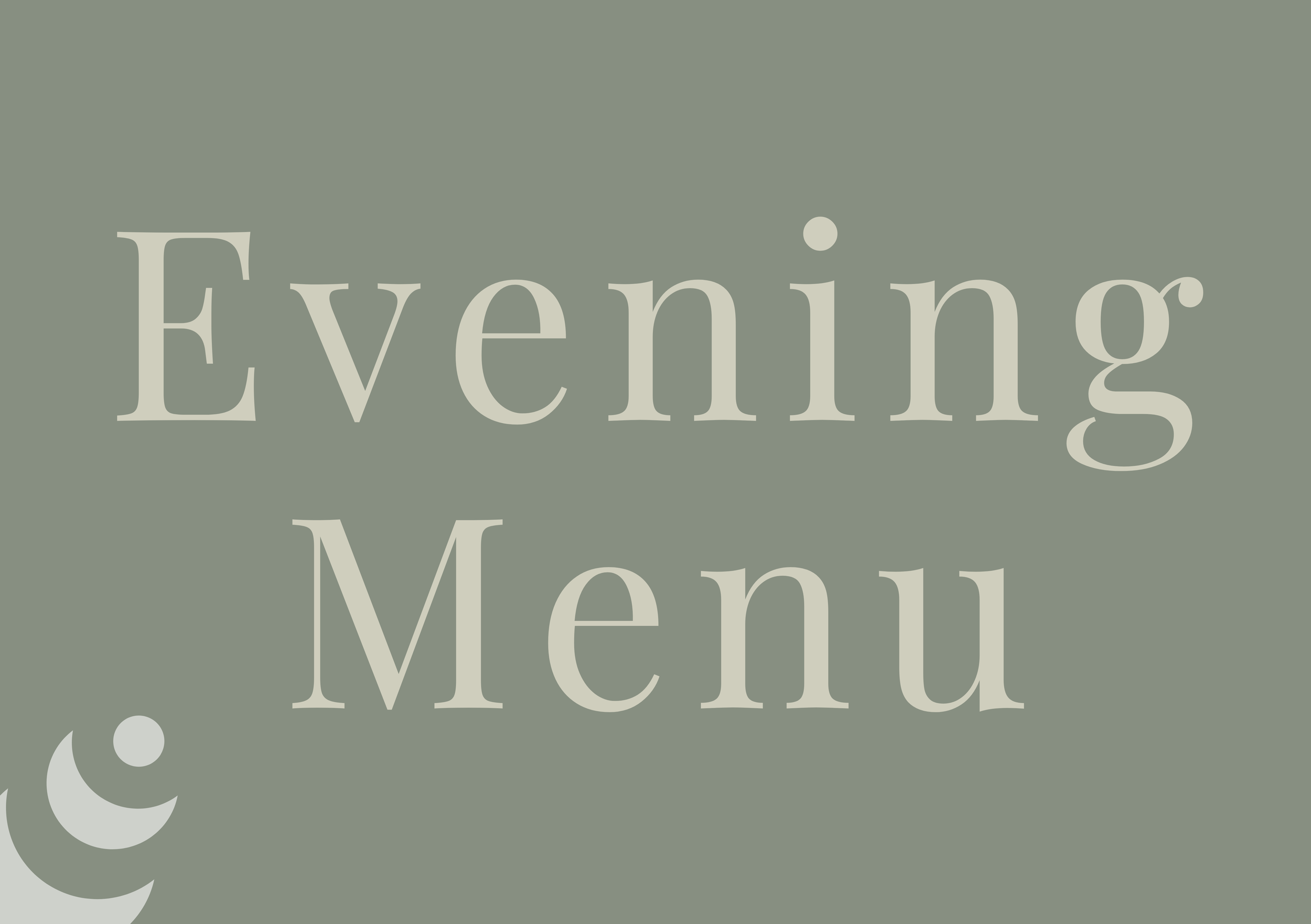 Evening Menu (Friday–Saturday, 5–9pm)