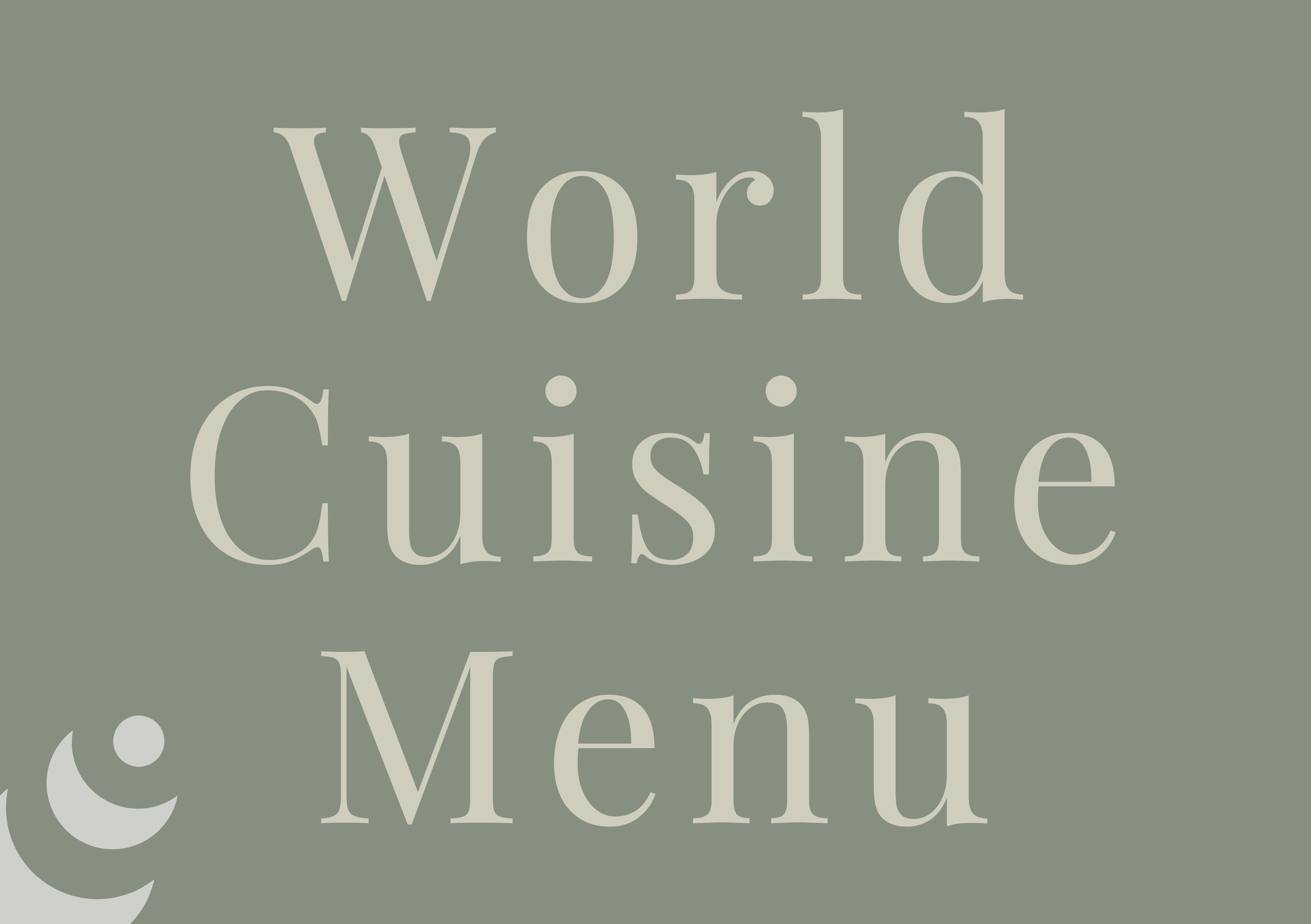 World Cuisine Menu (Thursdays, 5–9pm)